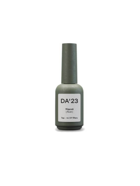 Top Fluid od DA'23 to profesjonalny top hybrydowy no wipe o rzadkiej konsystencji, idealny do wykończenia manicure i pedicure. Nakłada się wyjątkowo cienką warstwą, dzięki czemu nie tworzy nadmiernej grubości i zapewnia pełen komfort noszenia.
