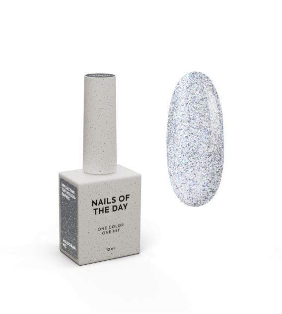 NAILSOFTHEDAY Reflective top Holographic to odblaskowy top hybrydowy z efektem holo do paznokci bez warstwy dyspersyjnej. Holograficzna drobinka mocno odbija każdą cząstkę światła, jest mikroziarnista, wysokiej jakości, jasno błyszczy. Dzięki nowoczesnej formule Nailsoftheday Reflective top Holographic idealnie się wyrównuje i dokładnie pokrywa powierzchnie paznokcia. Odporny na odpryski i zadrapania. Zachowuje stabilny połysk do czterech tygodni. Konsystencja jest średnio gęsta.