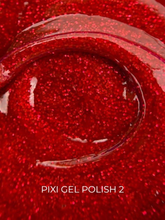 TOUCH Pixi gel polish 02 - czerwony brokatowy lakier hybrydowy, 9 ml
